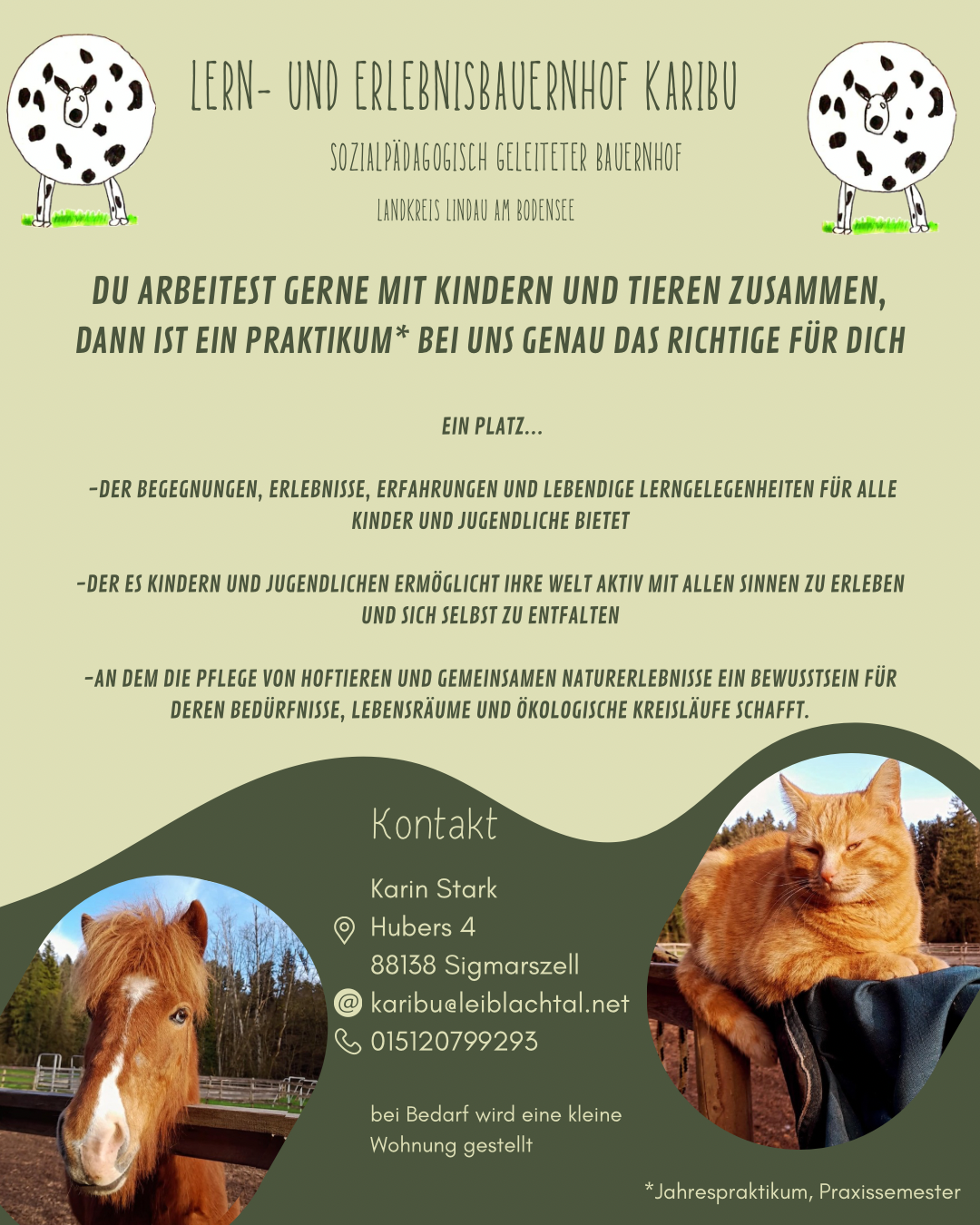 Versorgung und Arbeit mit Tieren (Pferde, Esel, Ziegen, Hühner, Katzen, Hasen)
